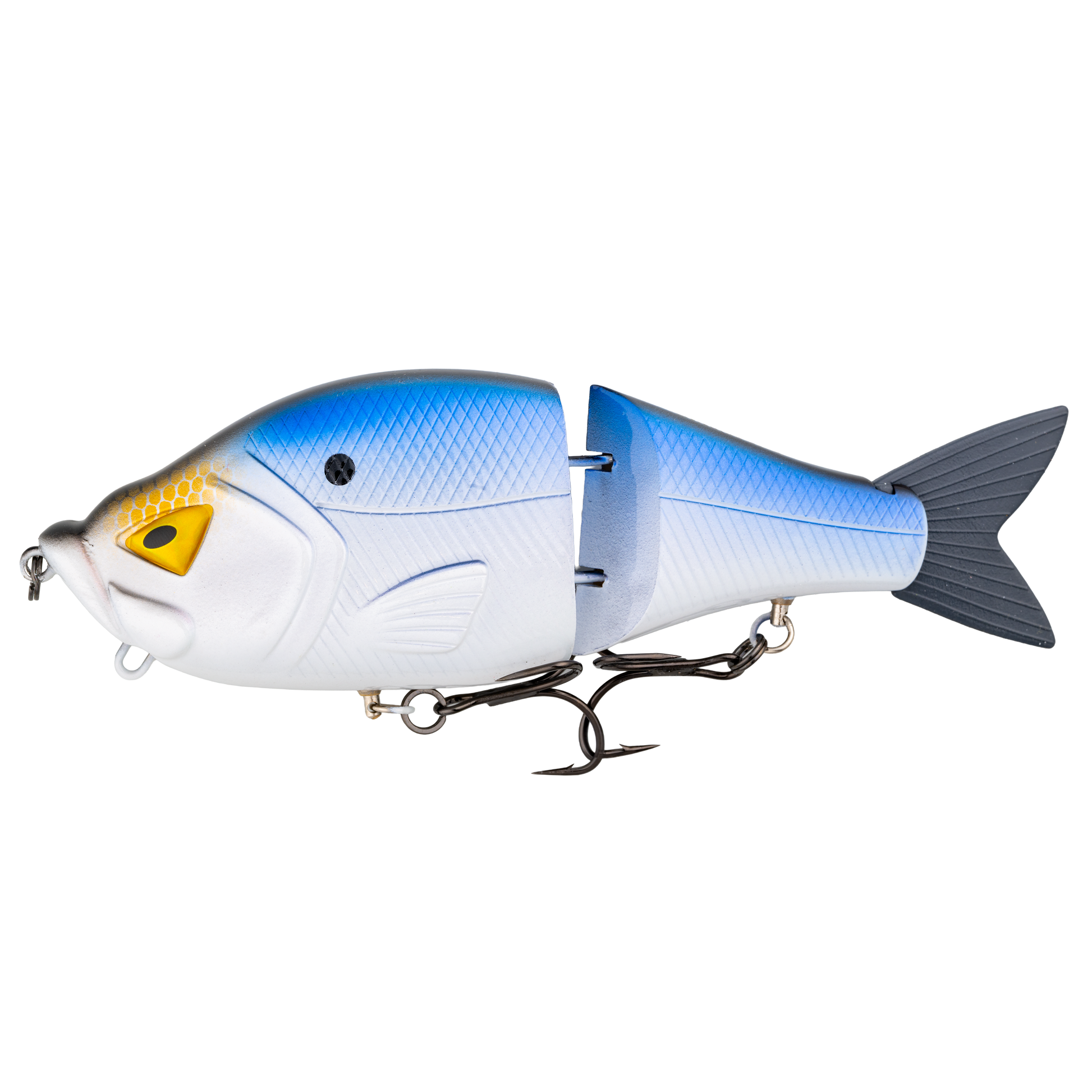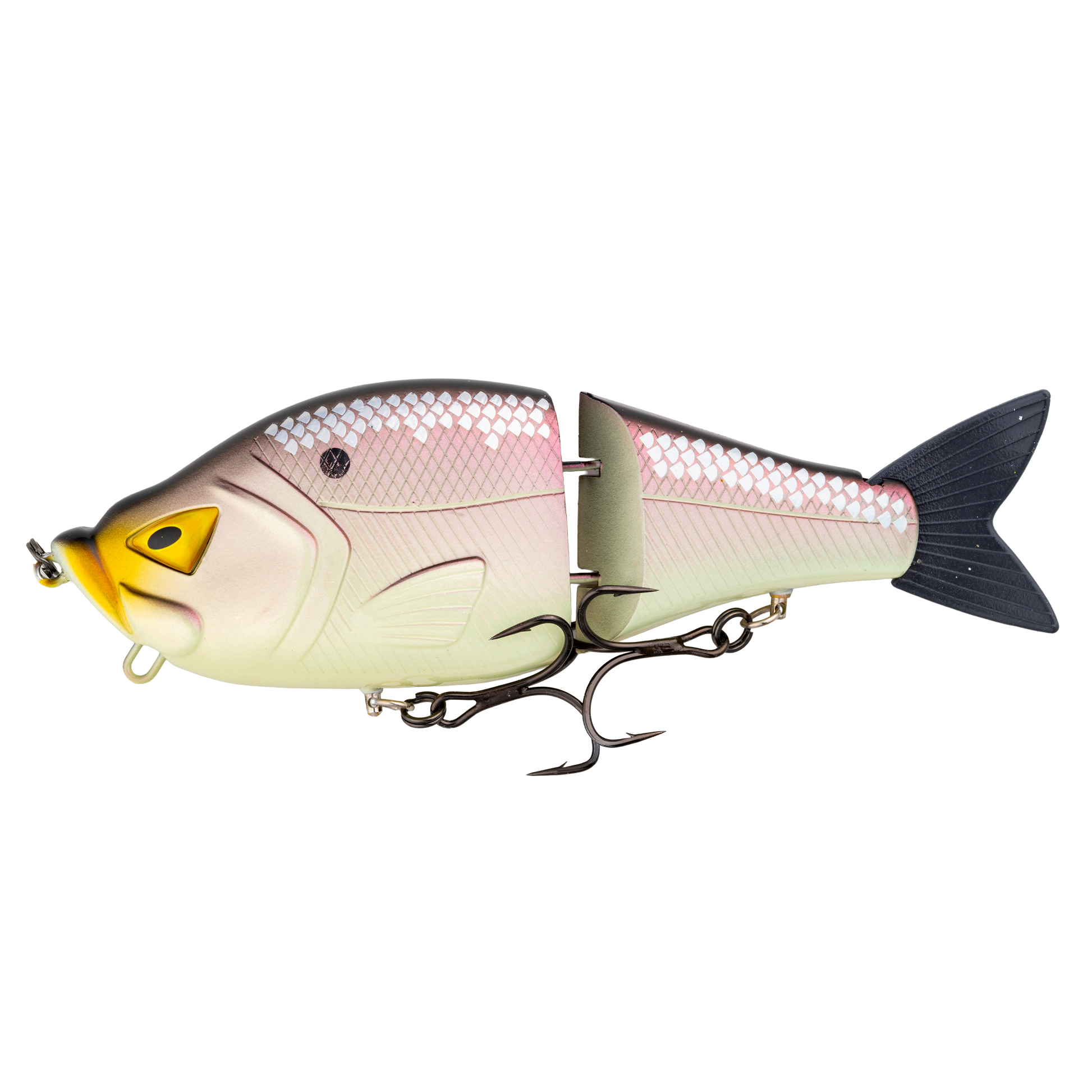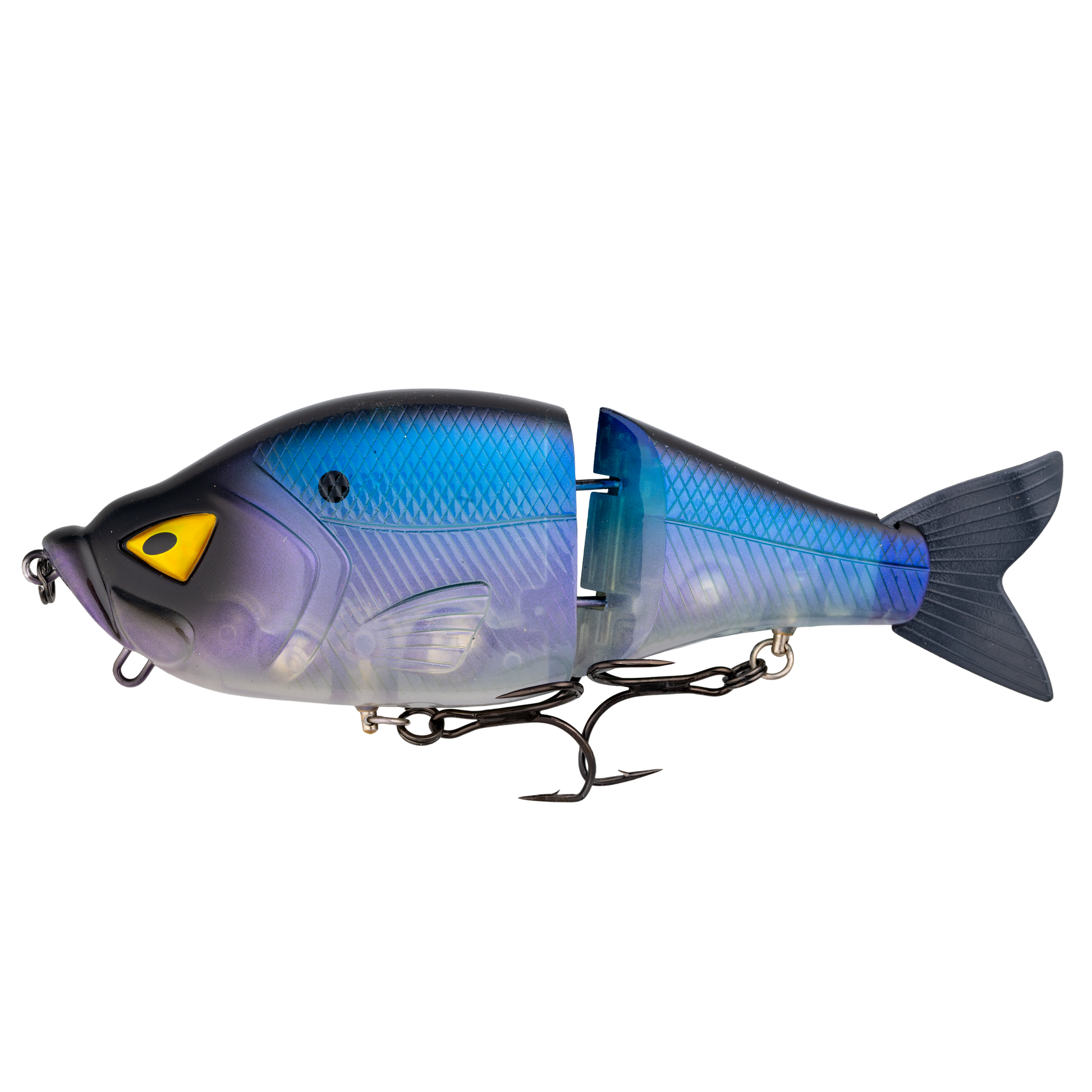 The RodBender Drift is a 5-inch, 2-ounce single jointed glide bait built for precision movement and trophy bites. With dual line-tie options, you control the action - a wide, natural glide for calm days or a flickering, dying baitfish motion when you need to trigger reaction strikes. Outfitted with two Mustad TG76 trebles on 360 degree swiveling hangers, the Drift holds fish tight and runs clean. its slow-sinking rate of roughly 1 foot every 2 seconds keeps it in the zone longer - perfect for stalking big bass in mid-depth structure.