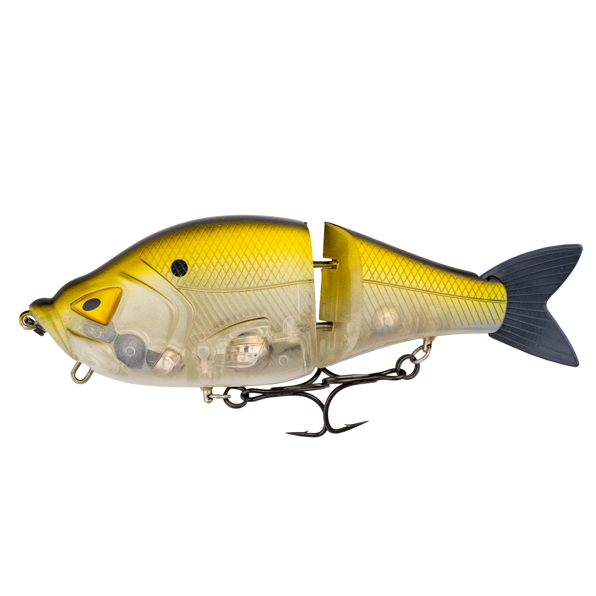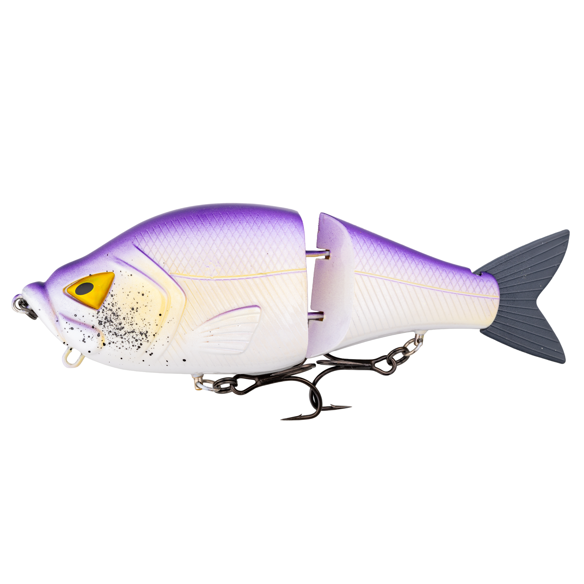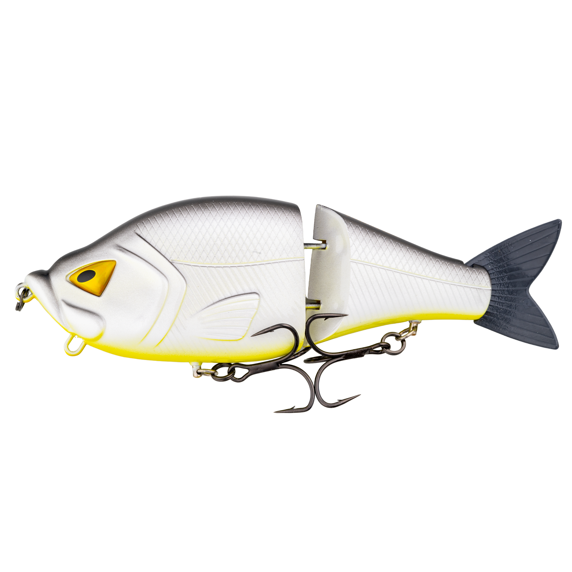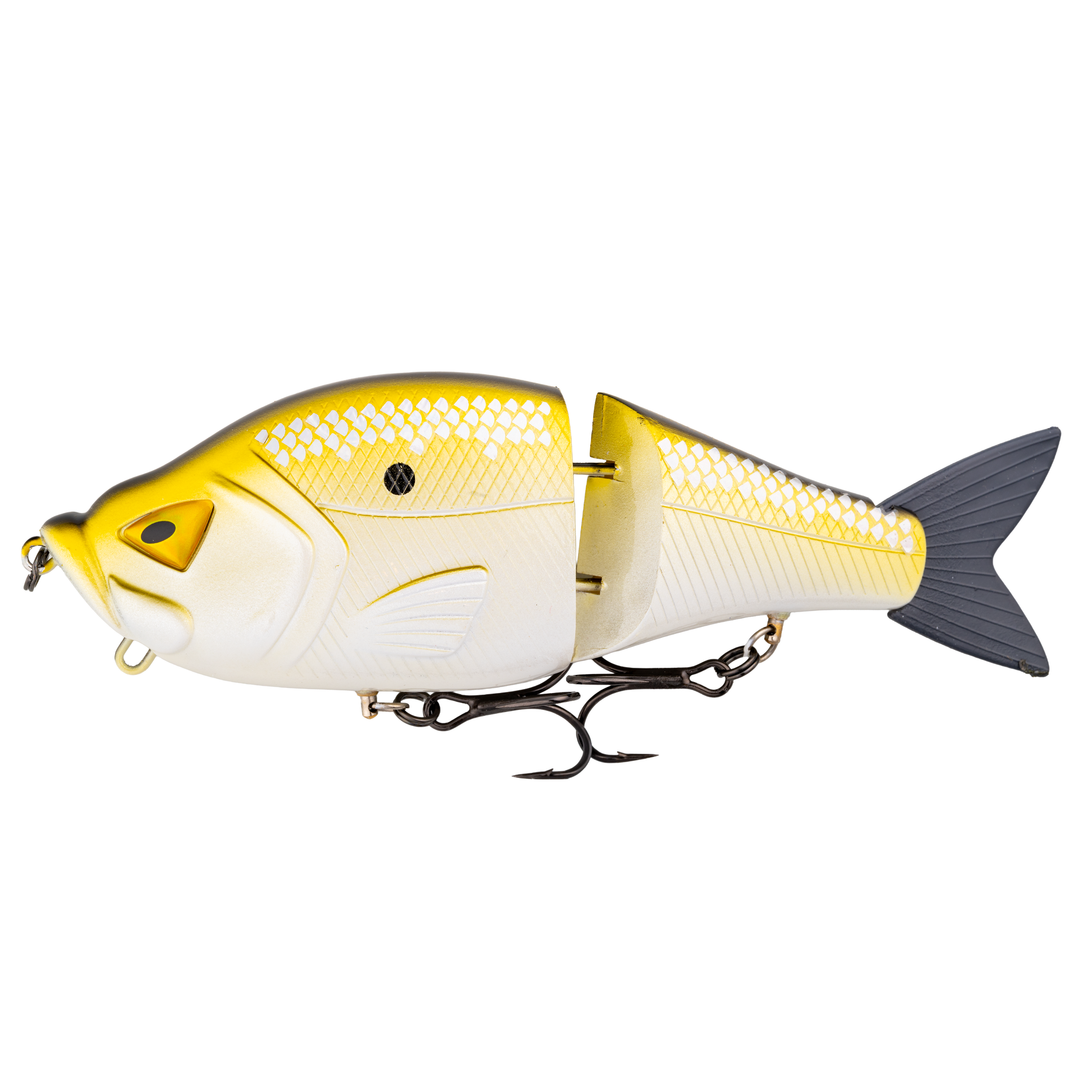 The RodBender Drift is a 5-inch, 2-ounce single jointed glide bait built for precision movement and trophy bites. With dual line-tie options, you control the action - a wide, natural glide for calm days or a flickering, dying baitfish motion when you need to trigger reaction strikes. Outfitted with two Mustad TG76 trebles on 360 degree swiveling hangers, the Drift holds fish tight and runs clean. its slow-sinking rate of roughly 1 foot every 2 seconds keeps it in the zone longer - perfect for stalking big bass in mid-depth structure.