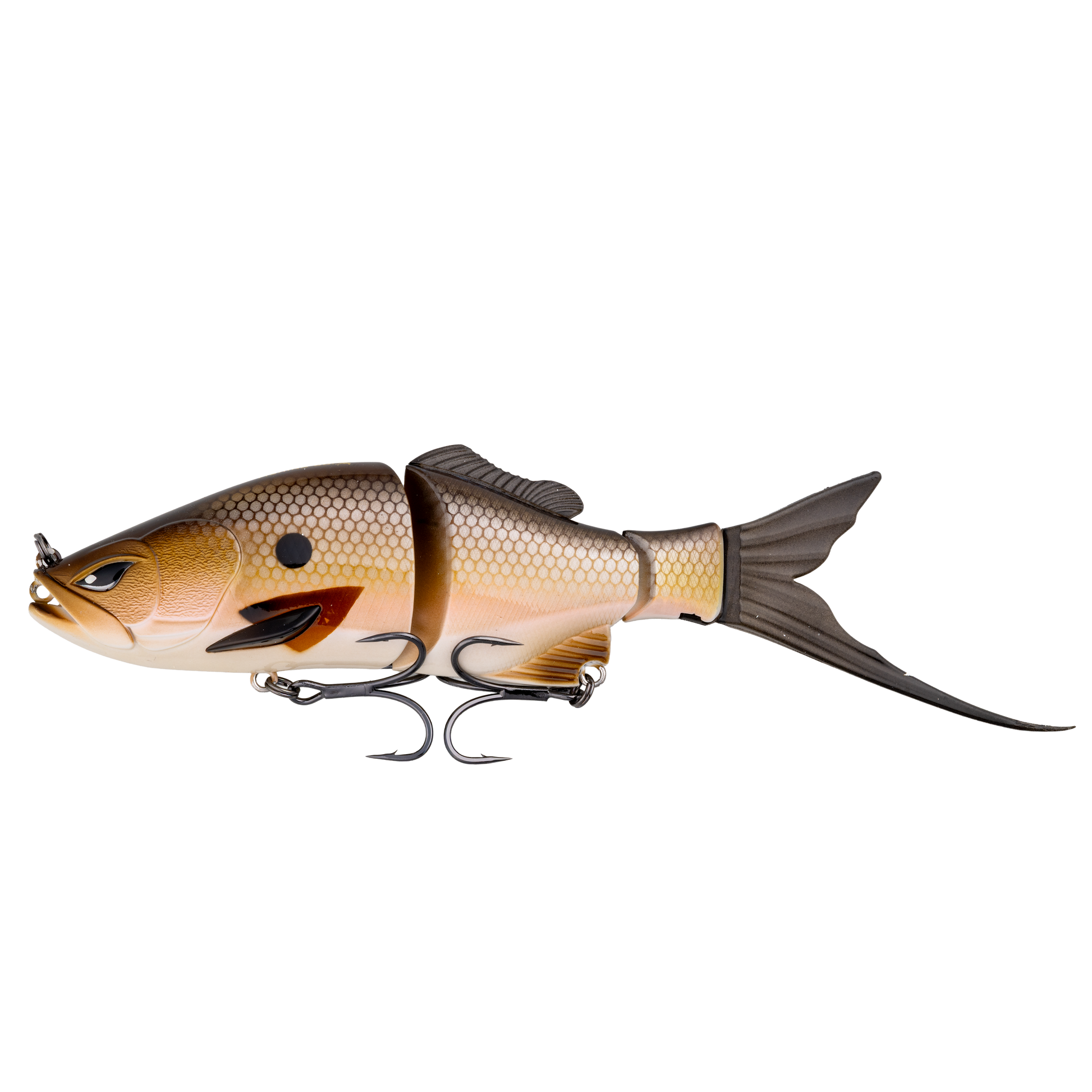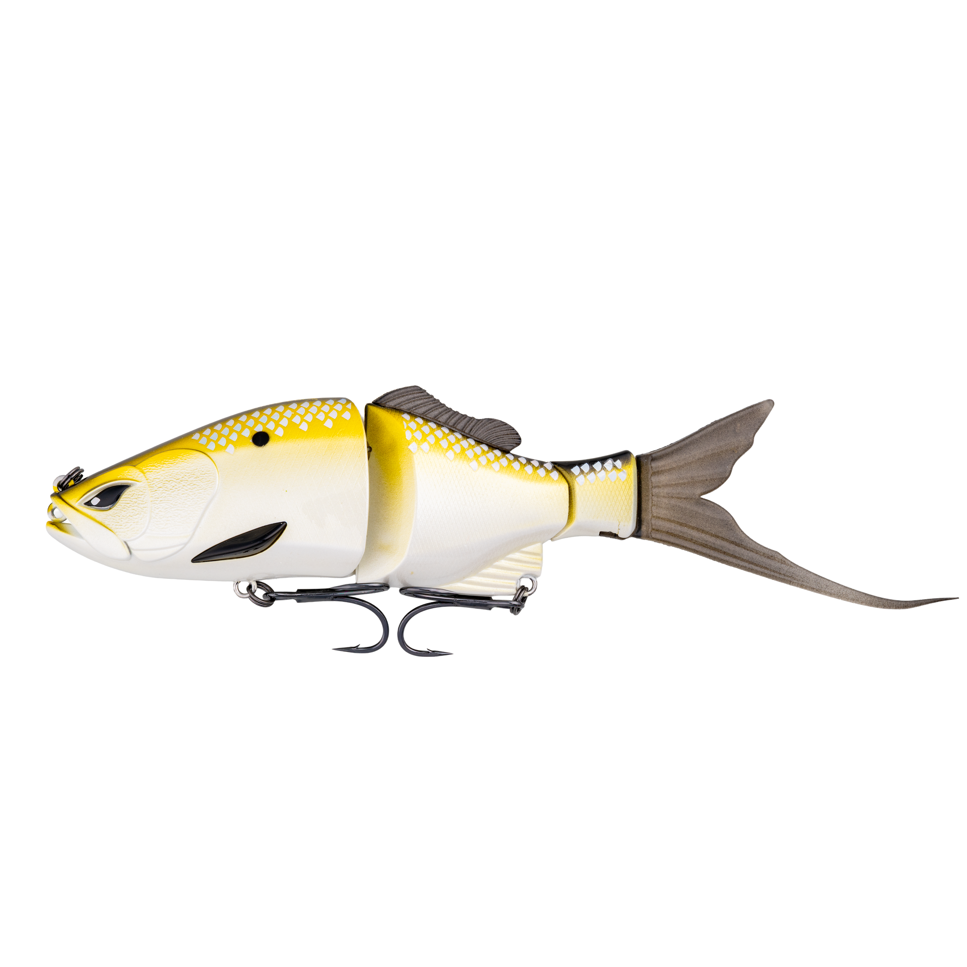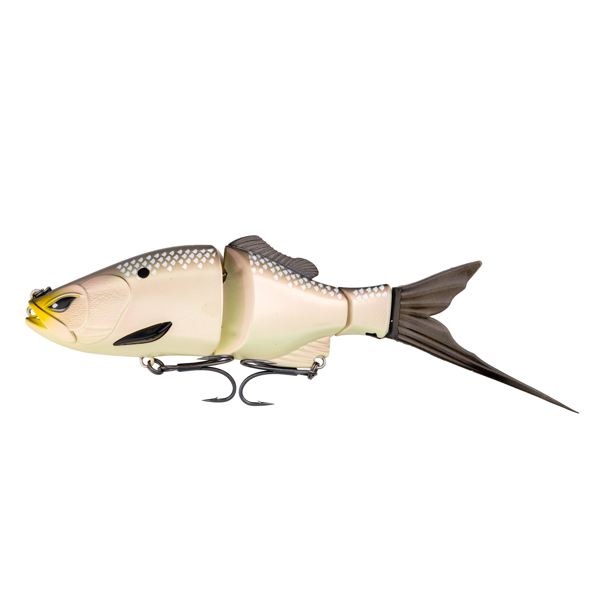 The RodBender Rift is a 6-inch, 2 3/8- ounce double-jointed glide bait built for smooth control and heavy reactions. It includes two interchangeable tail designs - one for a wide, lazy glide and another for a sharper, erratic cut. with a slow-sinking rate of about 1 foot every 2 seconds, the Rift hangs in the zone and dares big fish to strike. Outfitted with premium Mustad TG76 trebles, this bait is made for those who chase followers - and turn them into biters.