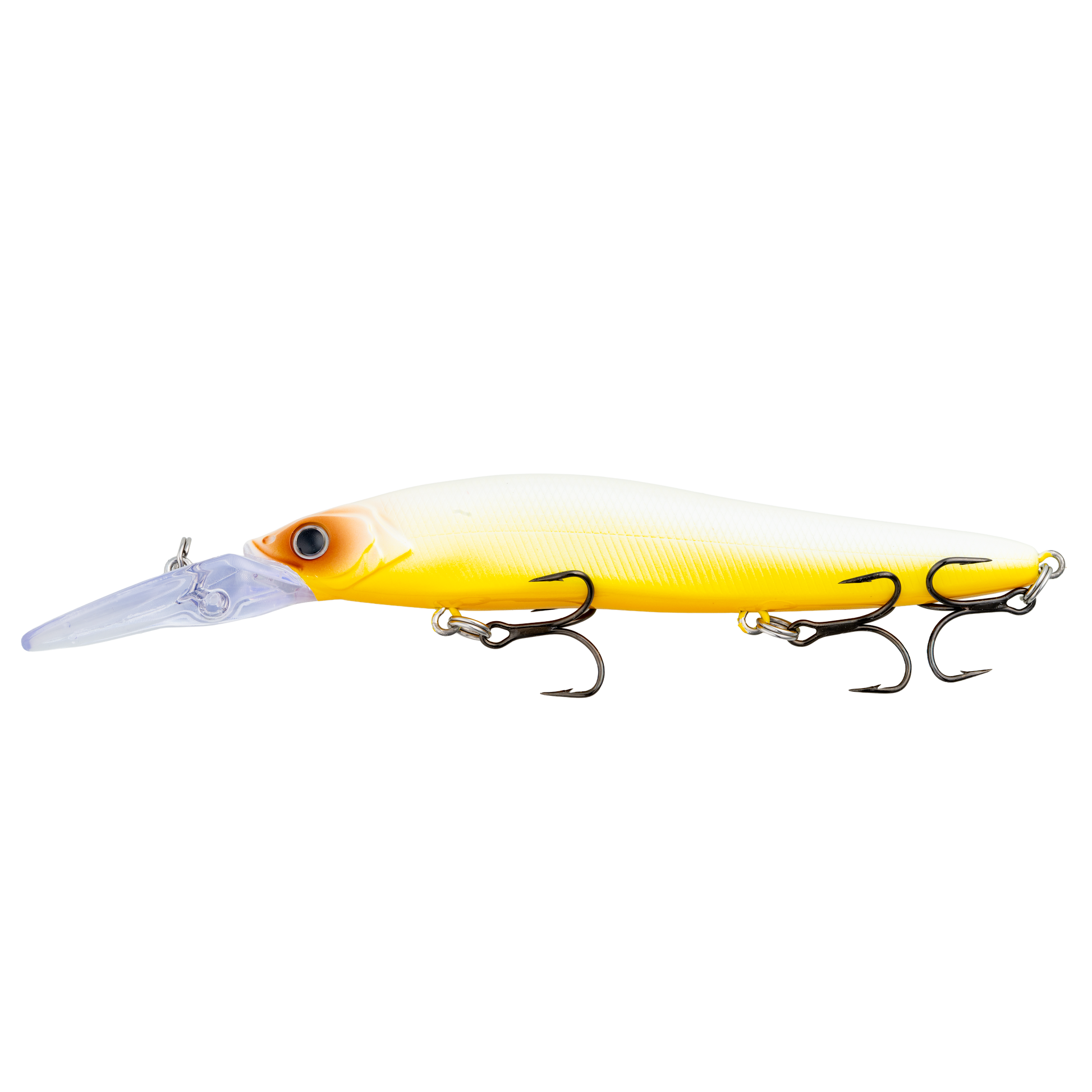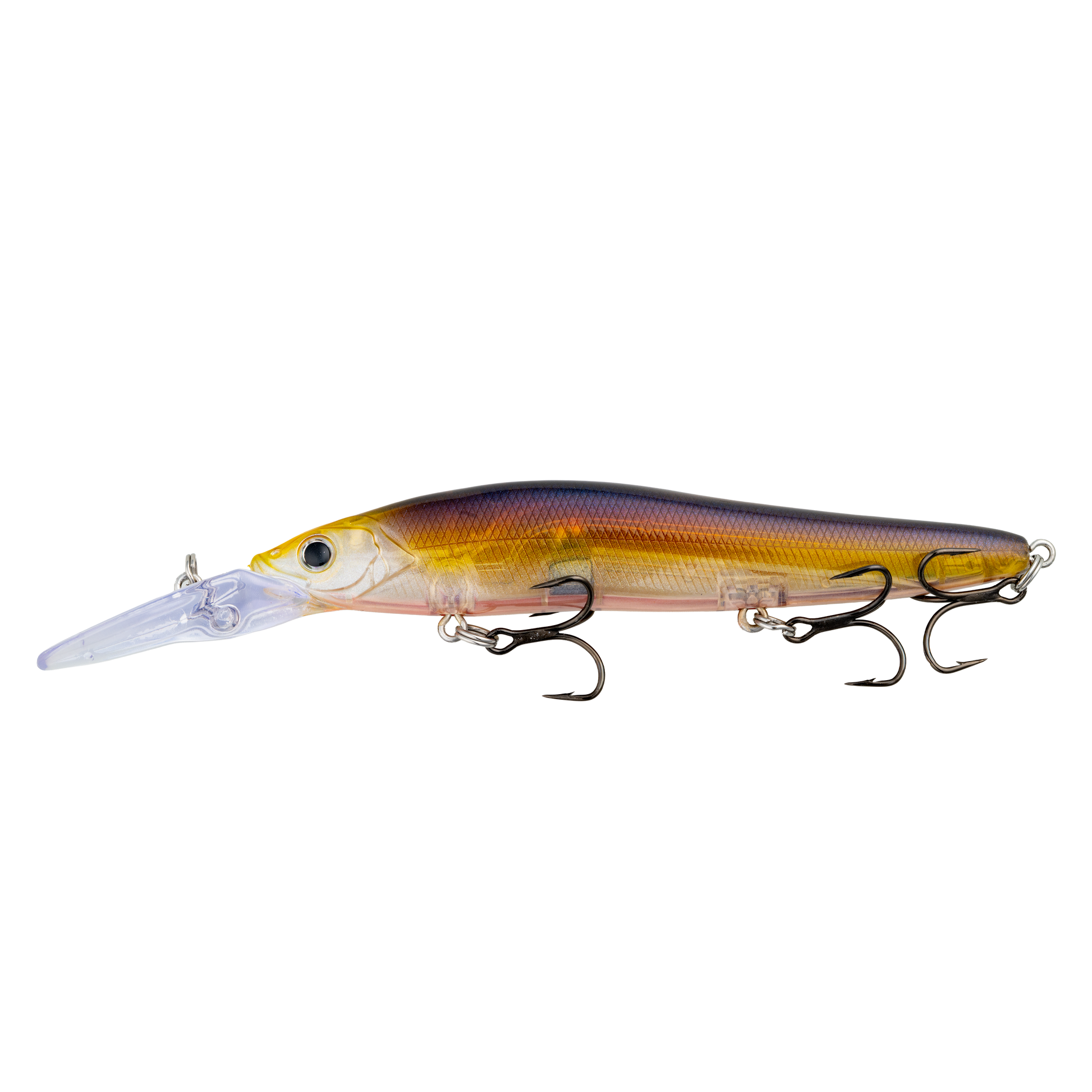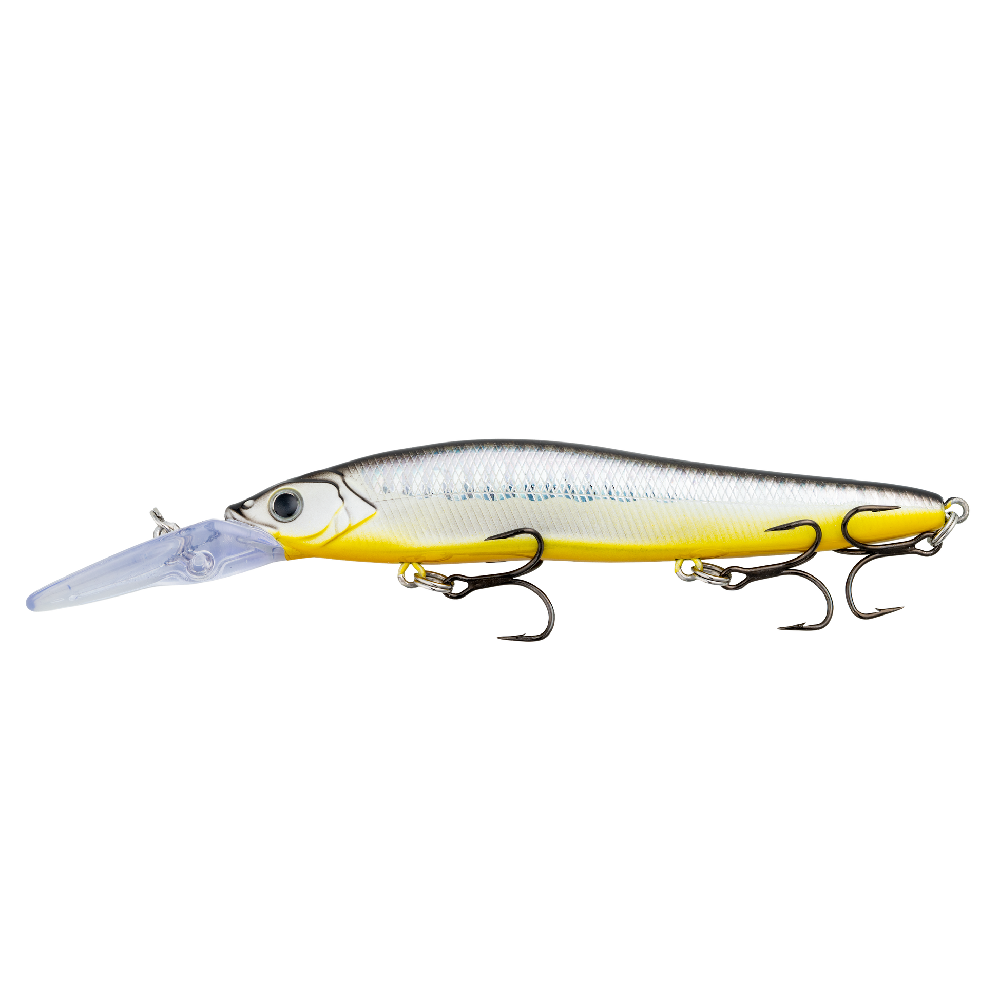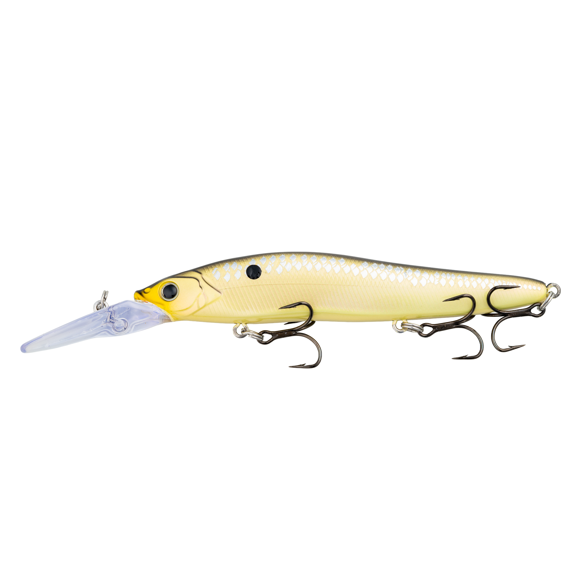 The RodBender Switch 110D takes the proven 110 profile deeper, diving 6-10 feet with a crisp, darting action that triggers strikes in the lower column. Weighing 1/2 ounce and armed with three Mustad TG76 trebles, it's perfectly balanced for a suspending presentation - staying put on the pause to tempt those followers into committing. When fish move off the bank, the 110D keeps your jerkbait bite alive.